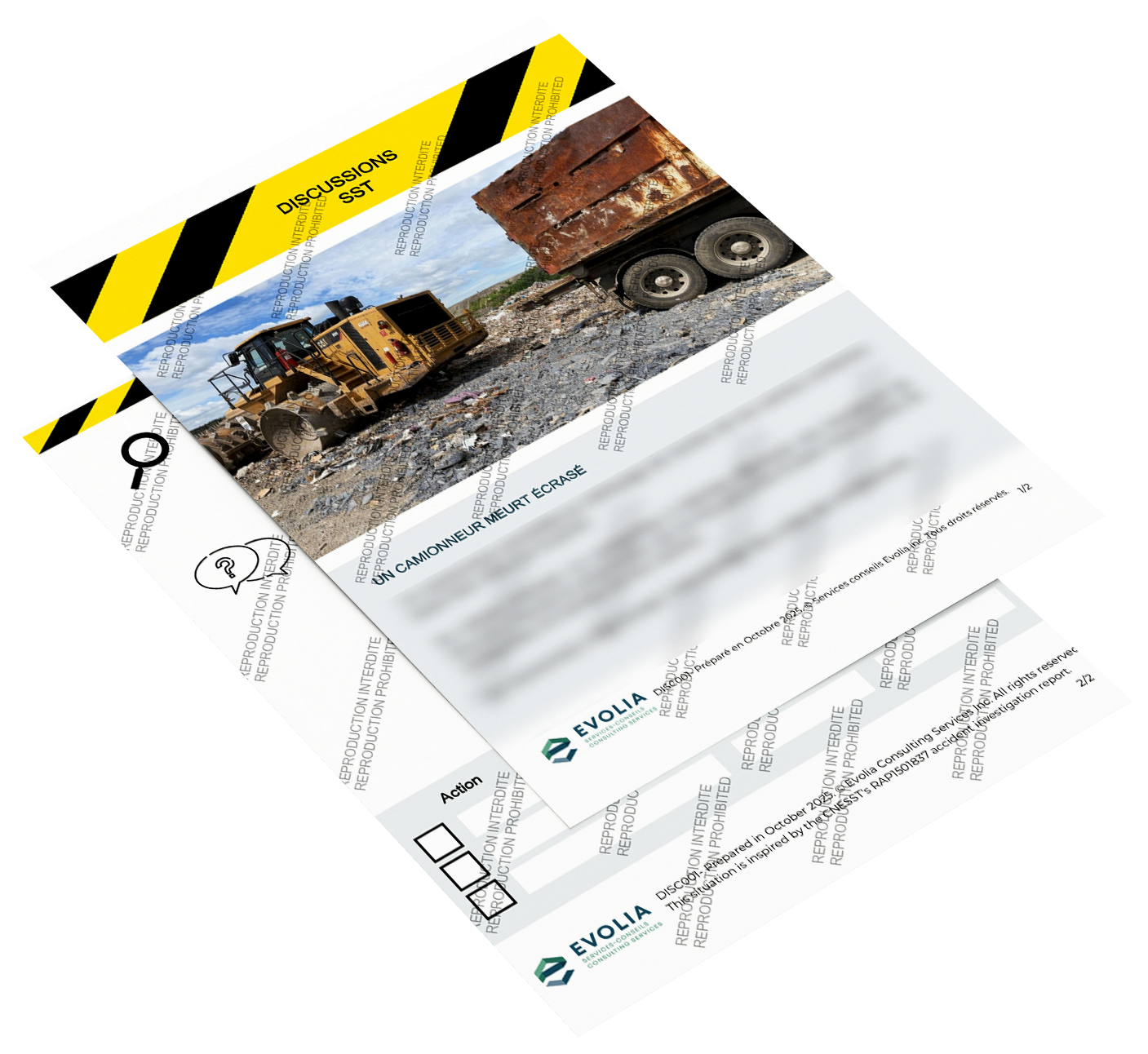 Inspiré d'accidents réels, ces documents de deux (2) pages chaque sont téléchargeables, disponibles en deux langues (Français et Anglais) et sont prêts à l’emploi par vos équipes. Ils comprennent: